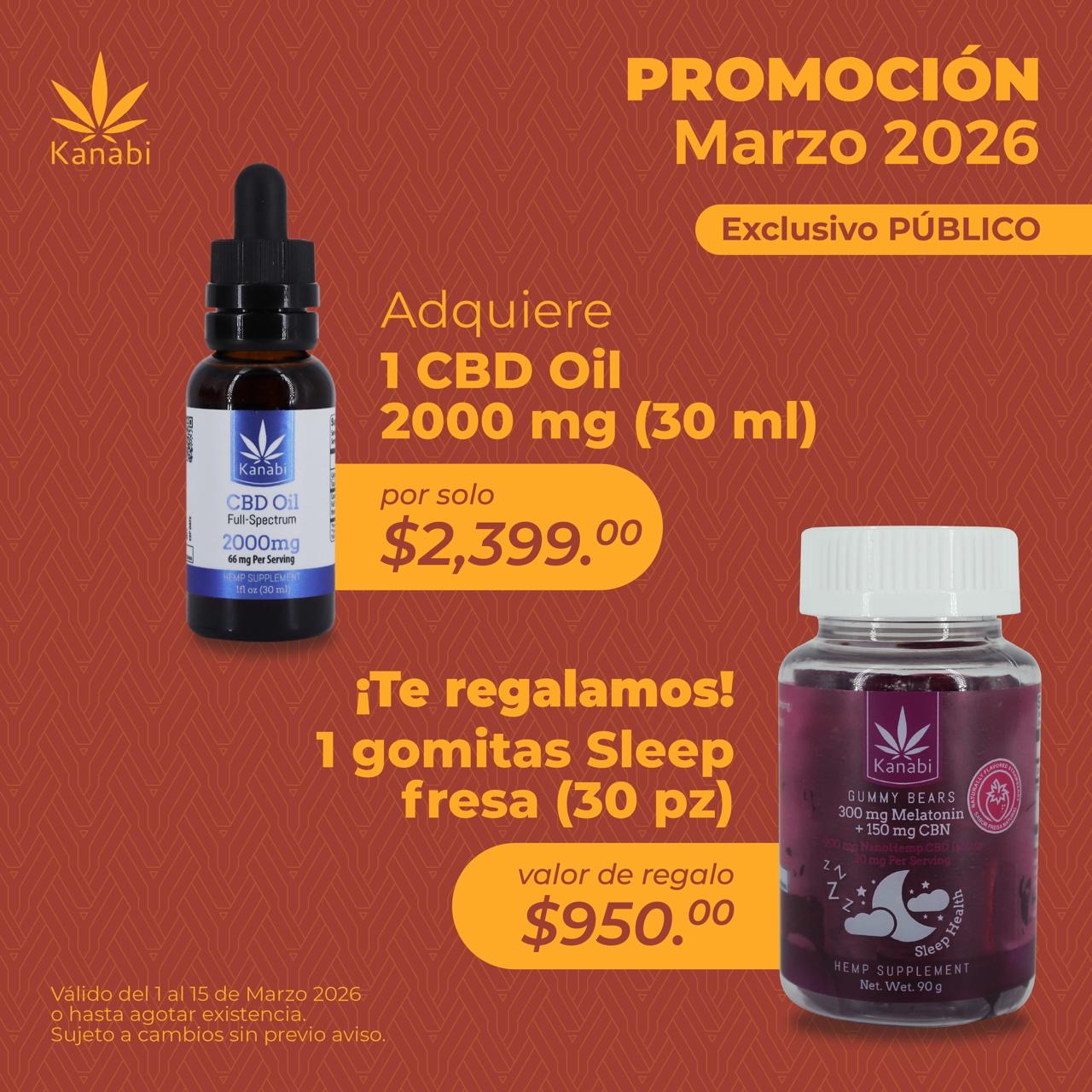 Llévate 1 cbd 2000mg por solo $2,399 y llévate 1 frasco de Gummy Bears SLEEP completamente Gratis.